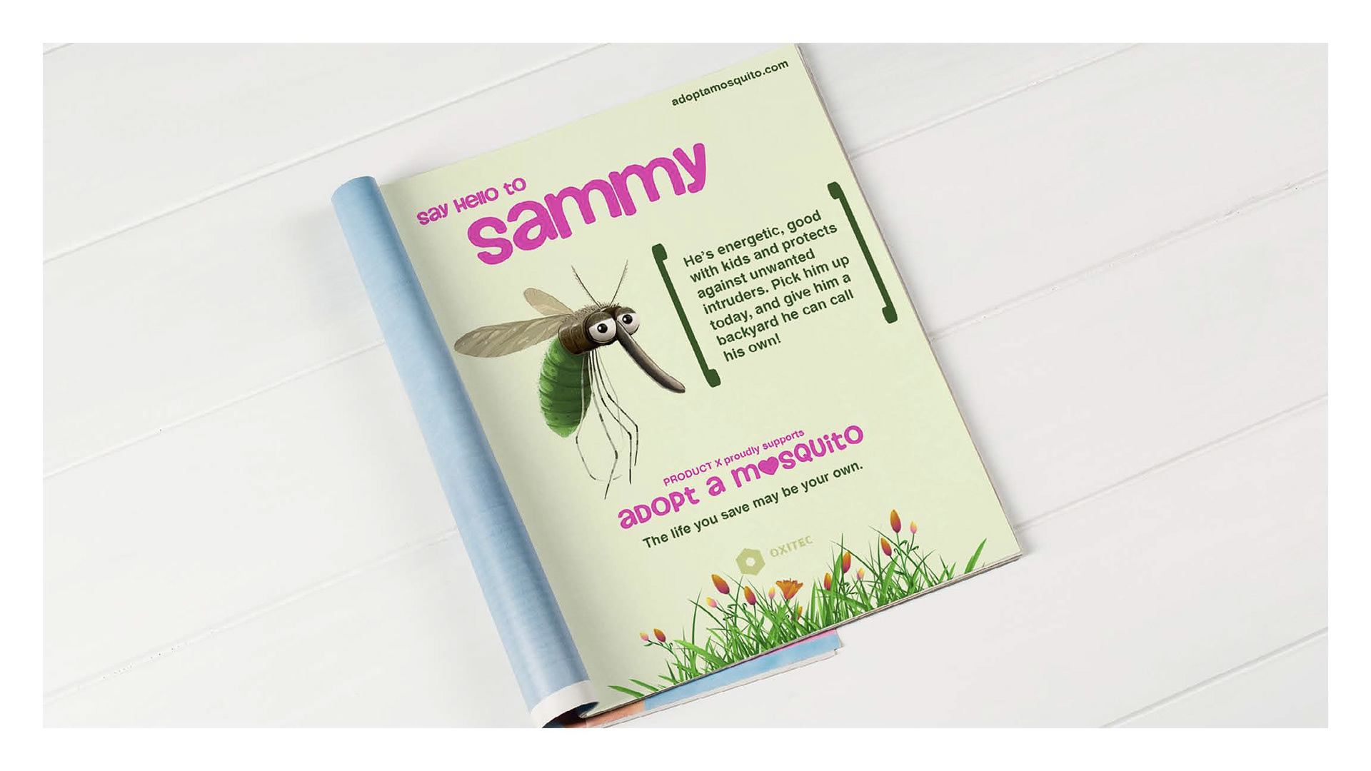 Mosquito-born diseases like Zika, Malaria, and Dengue are real threats to suburbia. Science has found a way to alter the genetic makeup of mosquitos to prevent them from reproducing. But science can often be scary, especially when it's not understood. Our job was to make Oxitec's unique brand of mosquitos friendly and inviting so that parents would ask their municipalities to introduce them into their neighborhoods.